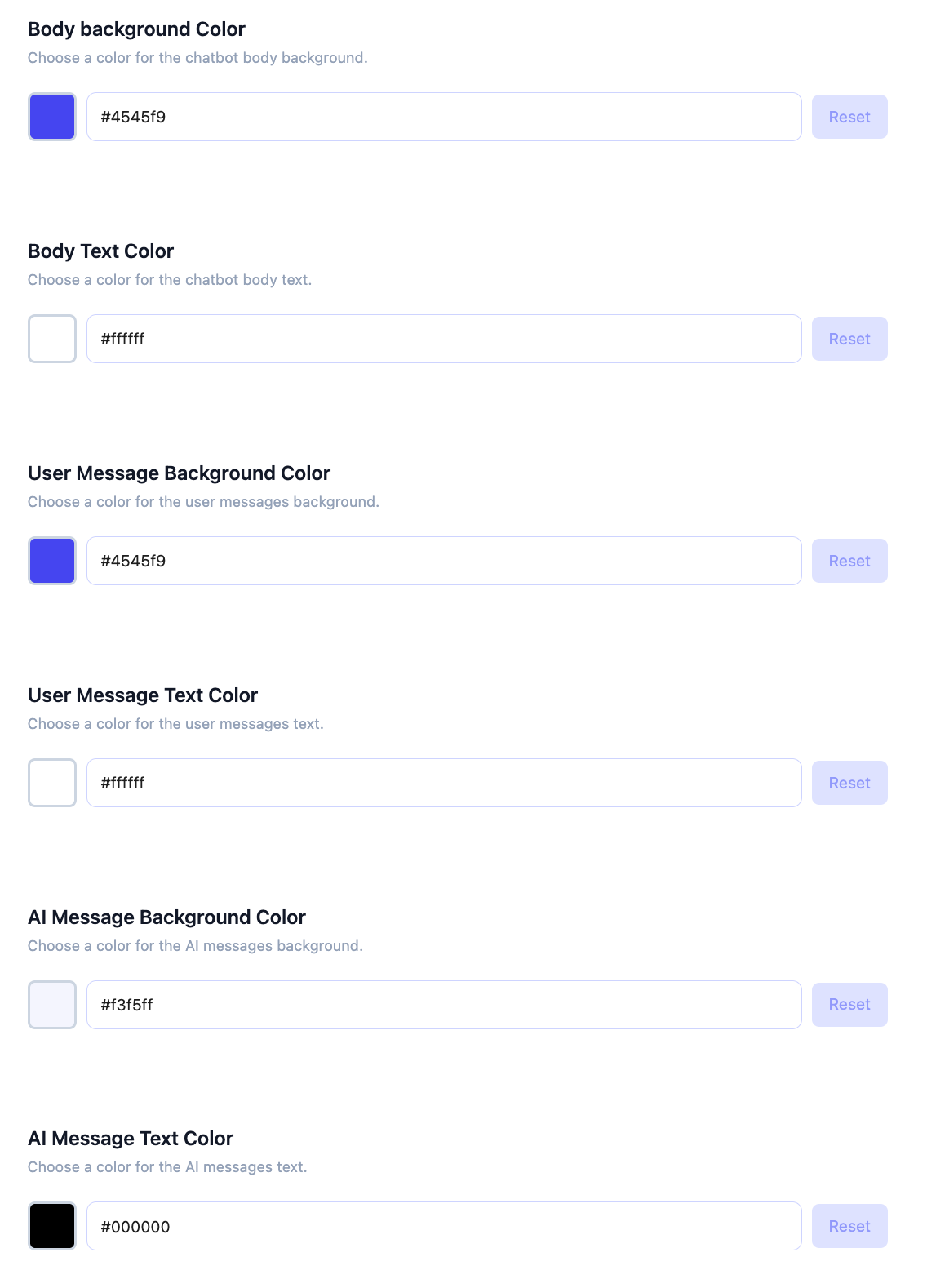Another interesting setting is the color customization setting. With that, you can add your brand color to the AI Chatbot and make it an inseparable cool widget of your website.