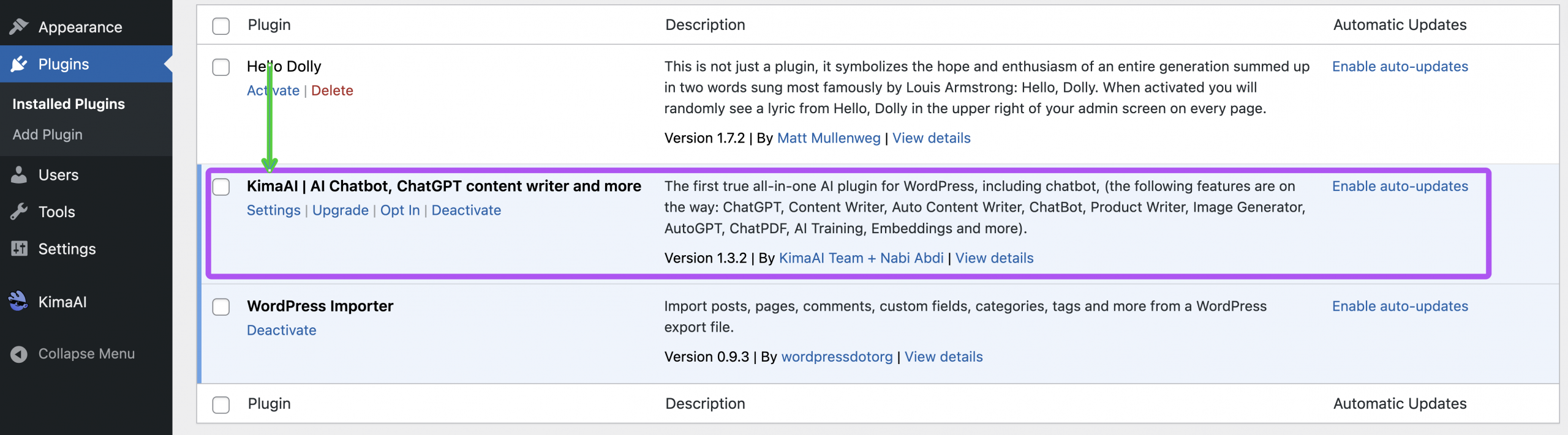 6. Now you should have the KimaAI plugin installed on your WordPress website.